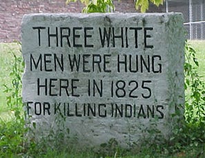 In the spot where the stone stands is the memory of three white men who were executed by state order for gruesomely murdering nine people: two men, three women, and four children of mixed tribal heritage. This event is catalogued in history as the “Fall Creek Massacre,” and a book by Jessamyn West from 1975 depicts its events and the eventual miscarriage of justice that this event was set to become the catalyst for.